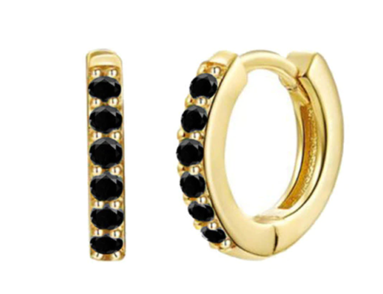 Black Stacked Gold Pretend Huggie Hoop Studs